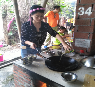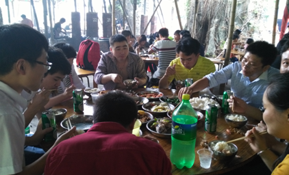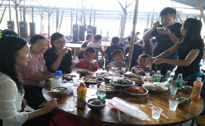 一起分享集體協(xié)作的成果,雞,魚(yú),蝦,排骨等等,對(duì)了,還有餃子,像魔法一樣呈現(xiàn)在大家面前,話不多說(shuō),趕緊大快朵頤,下午還有更精彩的行程等著我們!