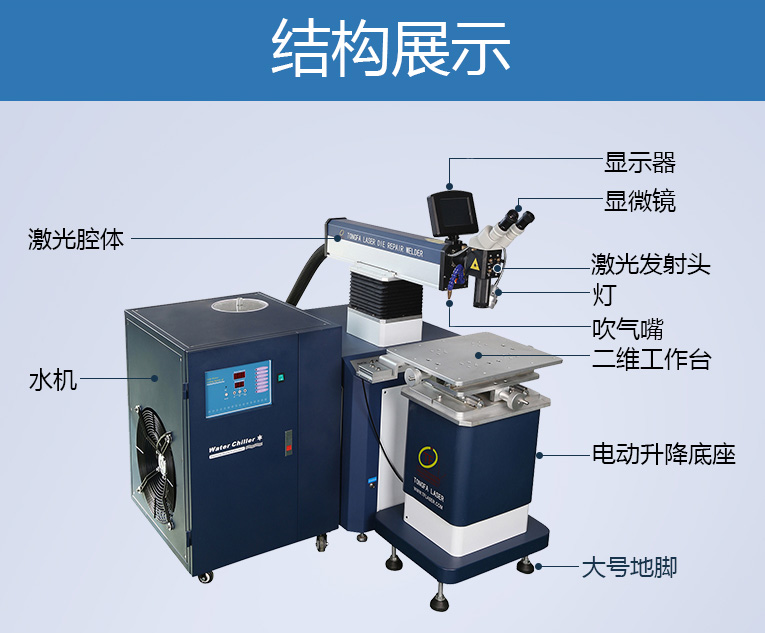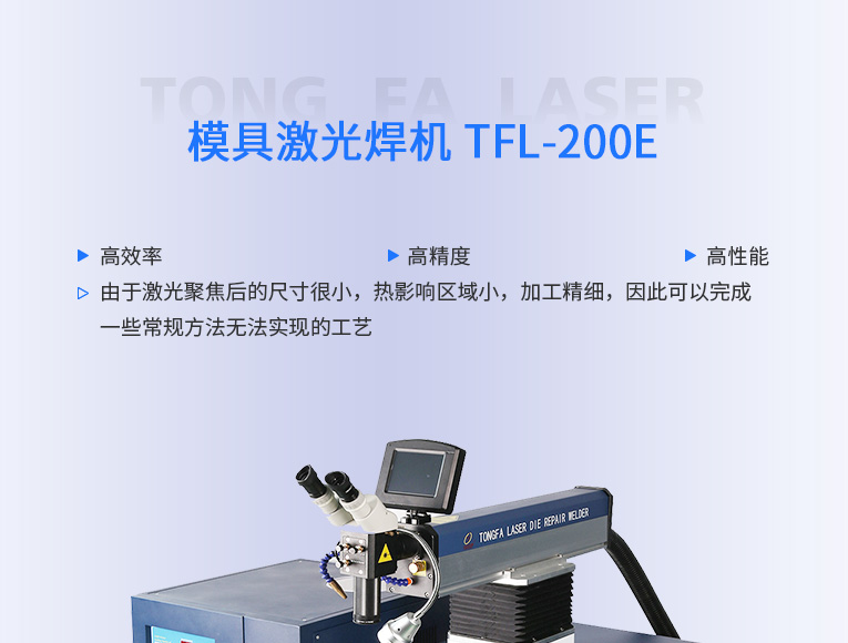 出口型模具激光焊機(jī)是通發(fā)激光公司專門為出口國(guó)外客戶使用而設(shè)計(jì)的系列機(jī)型TFL-200E,適用于各類精密注塑模具、壓鑄模具等模具激光修補(bǔ)焊接;同時(shí)也適合鑄件沙孔激光修補(bǔ)、模具崩缺激光修復(fù)、過切加工等的激光修補(bǔ);各類金屬結(jié)構(gòu)件、金銀首飾的激光焊接加工。