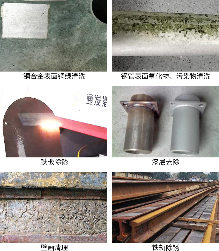 激光清洗具有無(wú)研磨、非接觸特點(diǎn),不但可以用來(lái)清洗有機(jī)的污染物,也可以用來(lái)清洗無(wú)機(jī)物,包括金屬的銹蝕、金屬微粒、灰塵等,應(yīng)用功效包括:除銹、脫漆、去油污、文物修復(fù)、除膠、去涂層、去鍍層。適用于銹層、漆層較厚,油污較深的情況下清潔,以及表面粗糙化、焊縫清潔等工藝環(huán)節(jié),效率極高。應(yīng)用行業(yè):航空、船舶、文物保護(hù)、汽車周邊、食品行業(yè)、軌道、橡膠模具、其他。